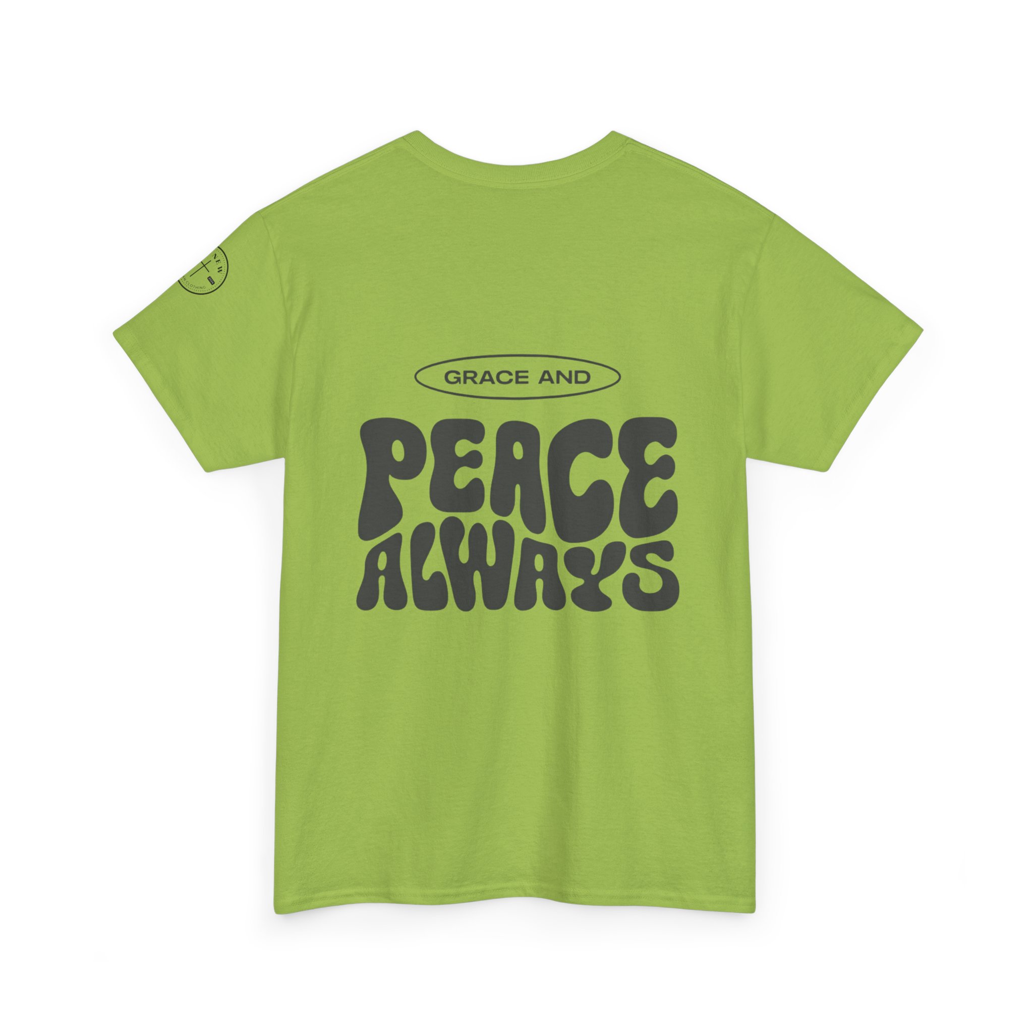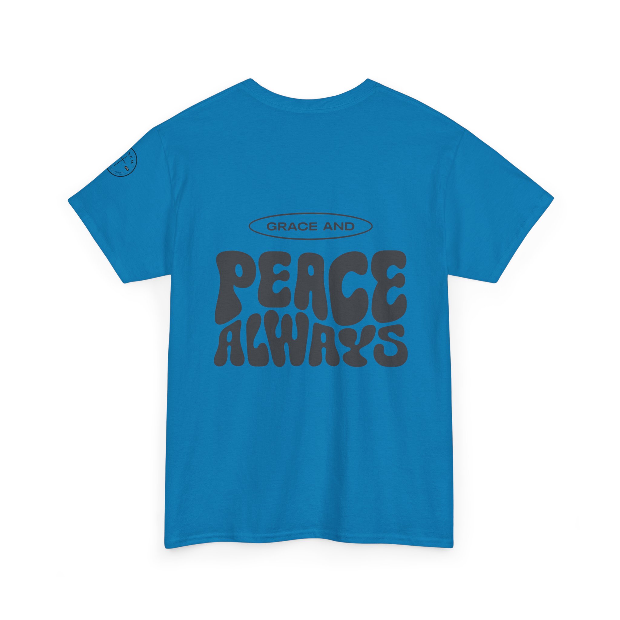 This retro-inspired design makes a bold, timeless statement: Grace and Peace Always. A reminder of the posture we’re called to carry — rooted in faith, calm in chaos. Featuring wavy vintage lettering on the back and a minimalist front, this tee is made to move with you — from worship to everyday wear. Printed on soft, durable fabric for all-day comfort.